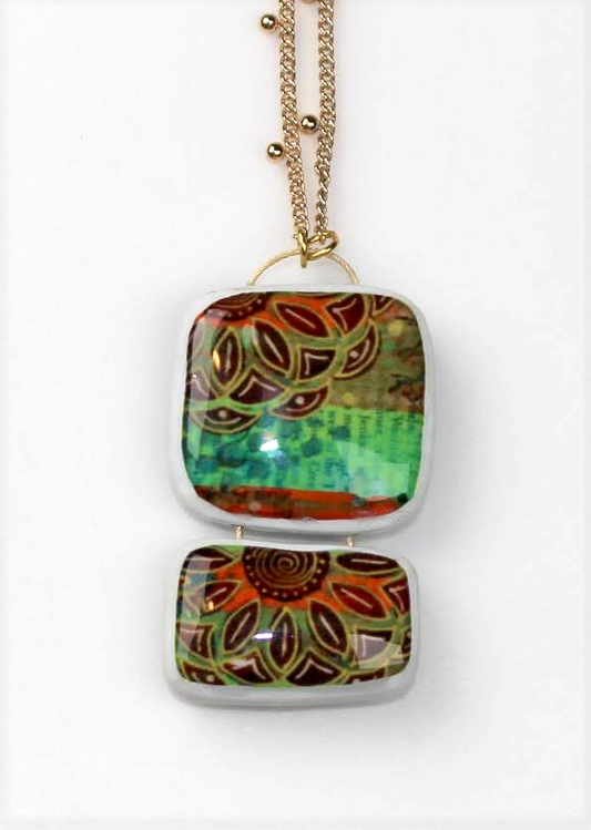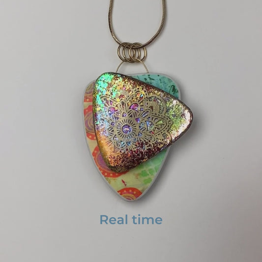 Coral and Blue Dazzle Two Layer Pendant Necklace