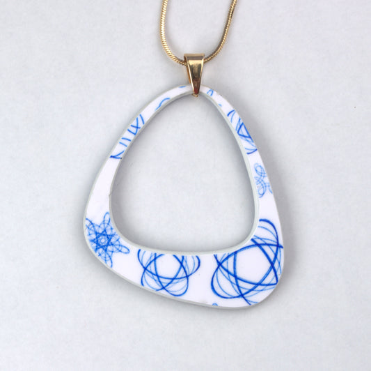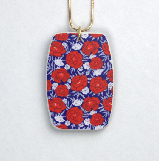 Red and White on Blue and Gold Pendant Necklace