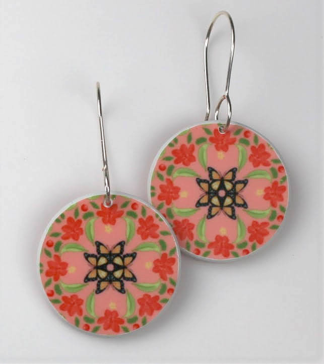 Dye Sublimation Blank Shapes are made of Unisub FRP (Fiber Reinforced Plastic), sublimatable on both sides, matte finish (Matte according to Unisub, but I think the finish is more of a lovely low sheen.) I cut each shape here at Orange Poppy Studio. This material can be cut with a jeweler's saw. You will also receive a paper template of each shape. I find templates to be extremely useful in positioning the blank shape on the sublimation print. See the Quick Start Tutorial on YouTube at the Shelley Nordman-Orange Poppy Studio Channel.