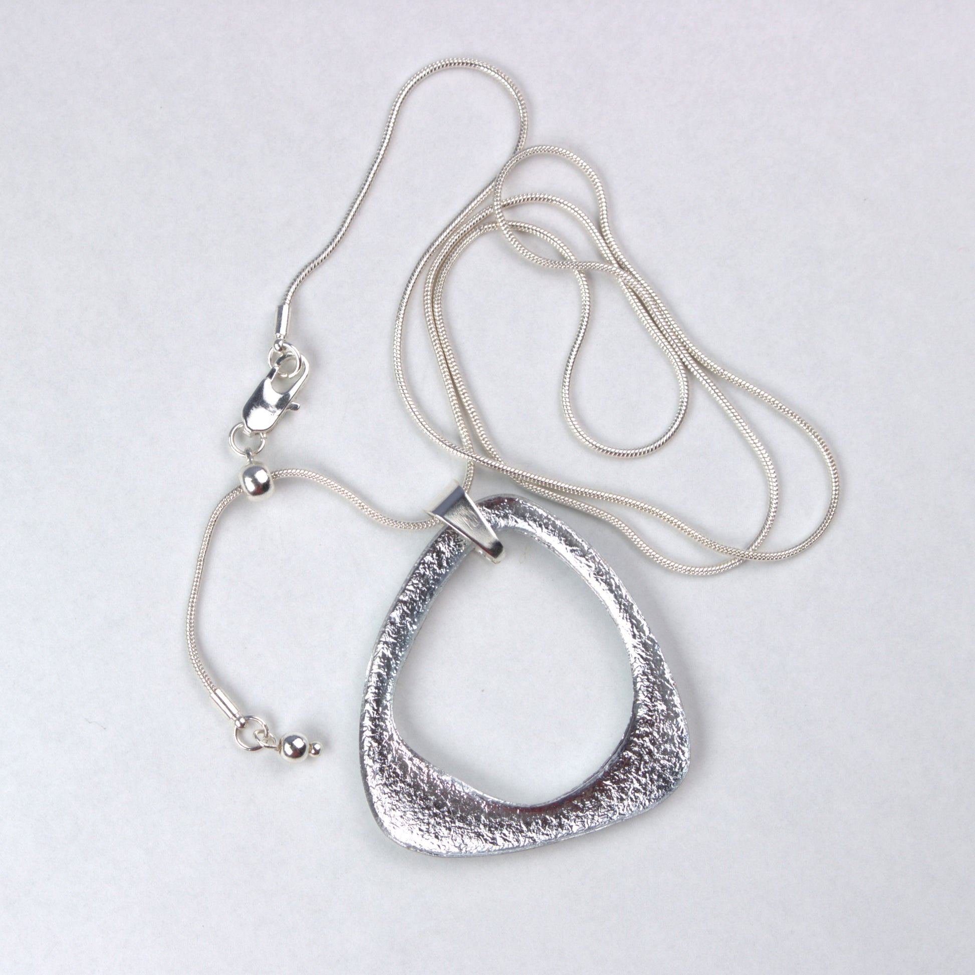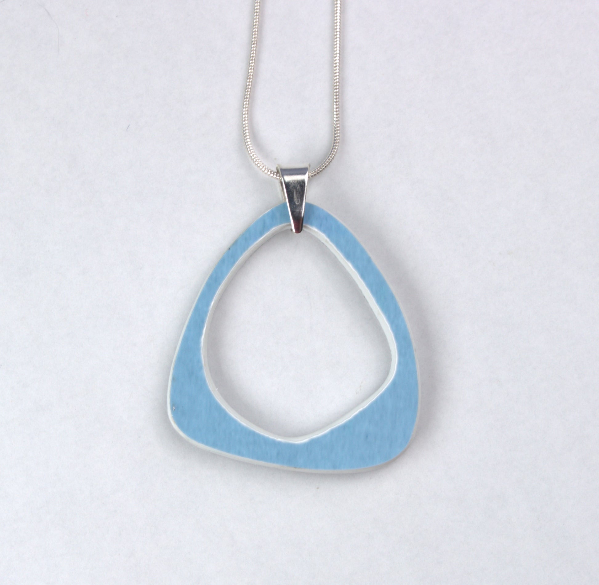 This pendant looks like it glows when the light hits it. The silver is very sparkly and rich. The reverse is a lovely robin's egg blue. You can wear it with either side forward. Use a damp, soft cloth to clean. Each item is handmade so there will be slight variations from the earrings pictured.