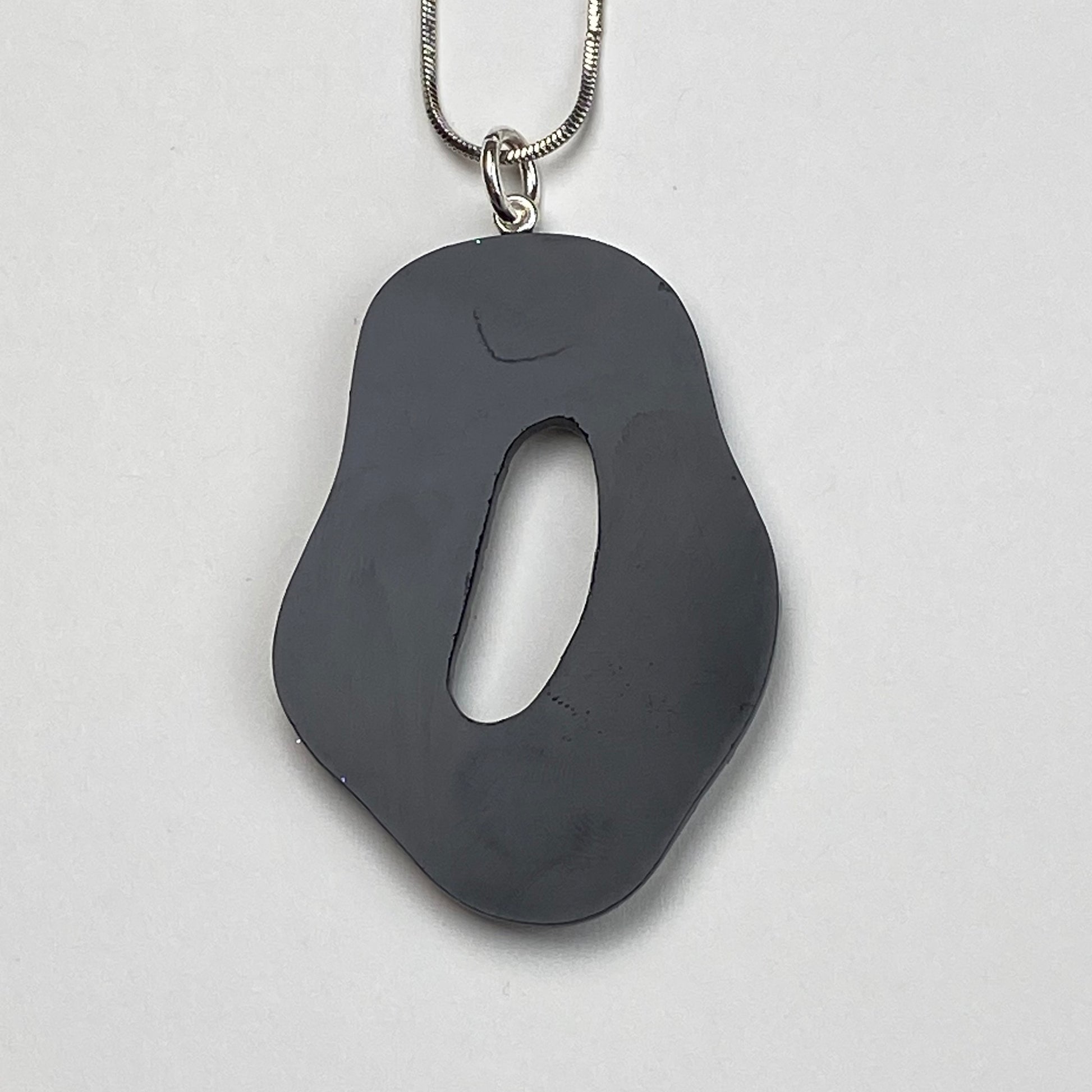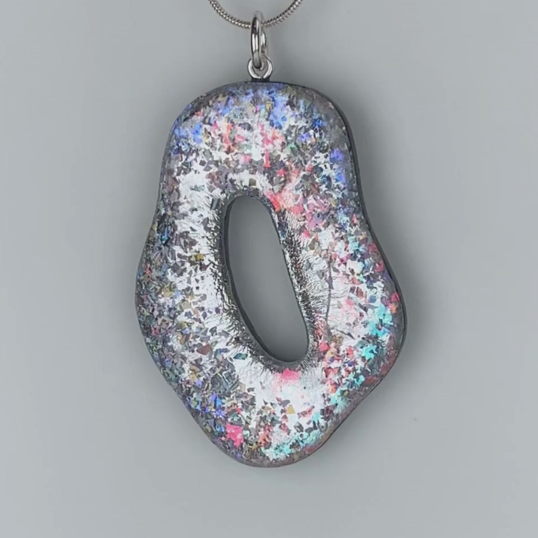 Materials: FRP, foil, multi-chrome flakes, resin, and a silver-plated chain.