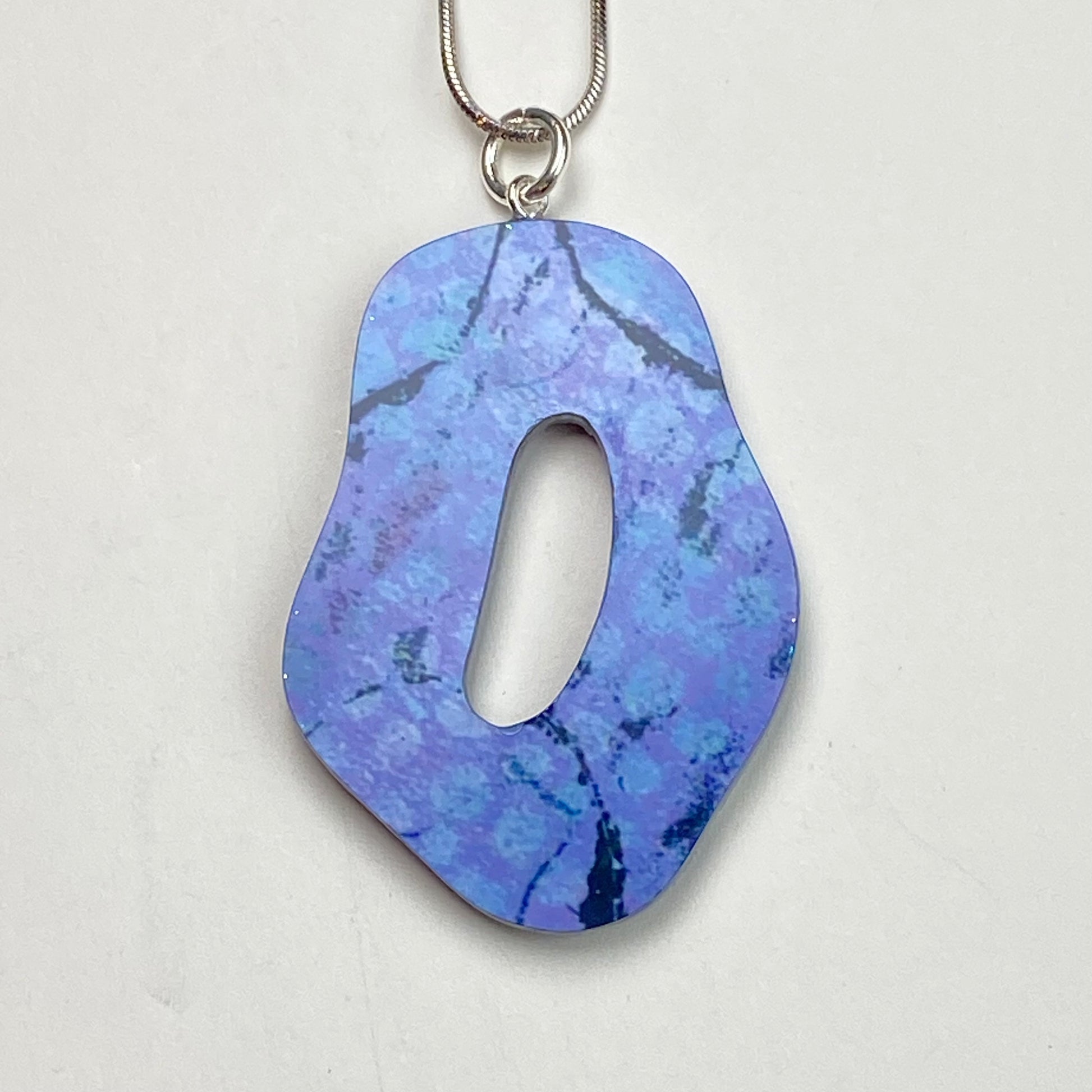 Materials: FRP, foil, multi-chrome flakes, resin, and a silver-plated chain.