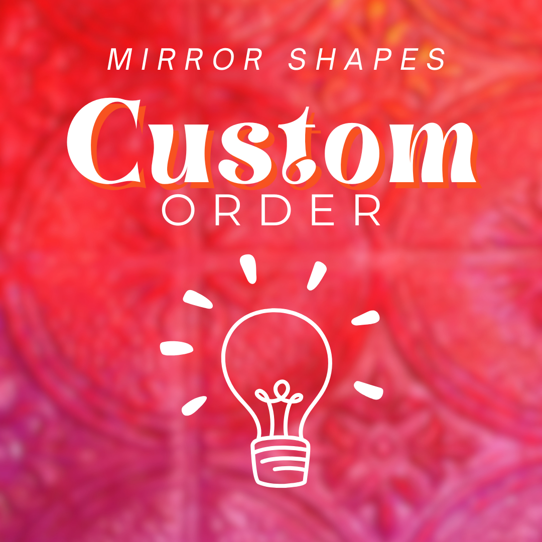 Let's work together to create the mirror shapes you want. Contact me through this website and we will make your ideas a reality. I can work from a photo of a drawing, a prepared graphic file, or anything in between. You will receive a quote as soon as I get the information on shape, size, and quantity. The acrylic mirror is 1/8" (3mm) thick and has a protective plastic film on the surface. Please remove this plastic film just before using it.