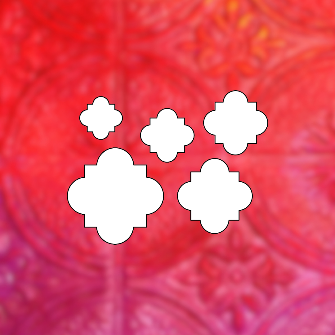 Feminine and exotic. This set of five pieces range in size from 1-2.25" across. You can use them individually or layered. Photos of examples are shown.