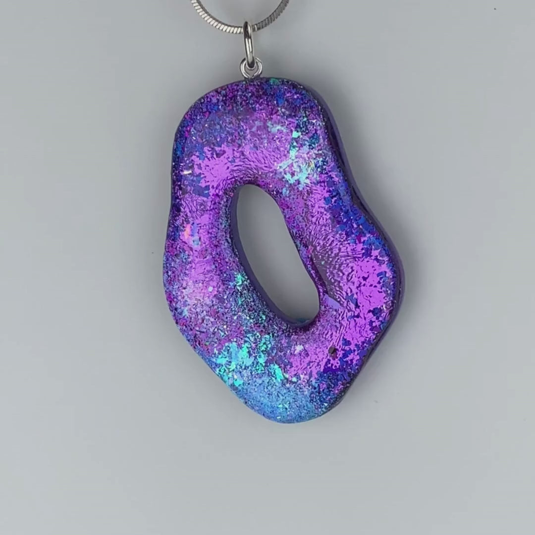 Materials: FRP, foil, multi-chrome flakes, resin, and a silver-plated chain.