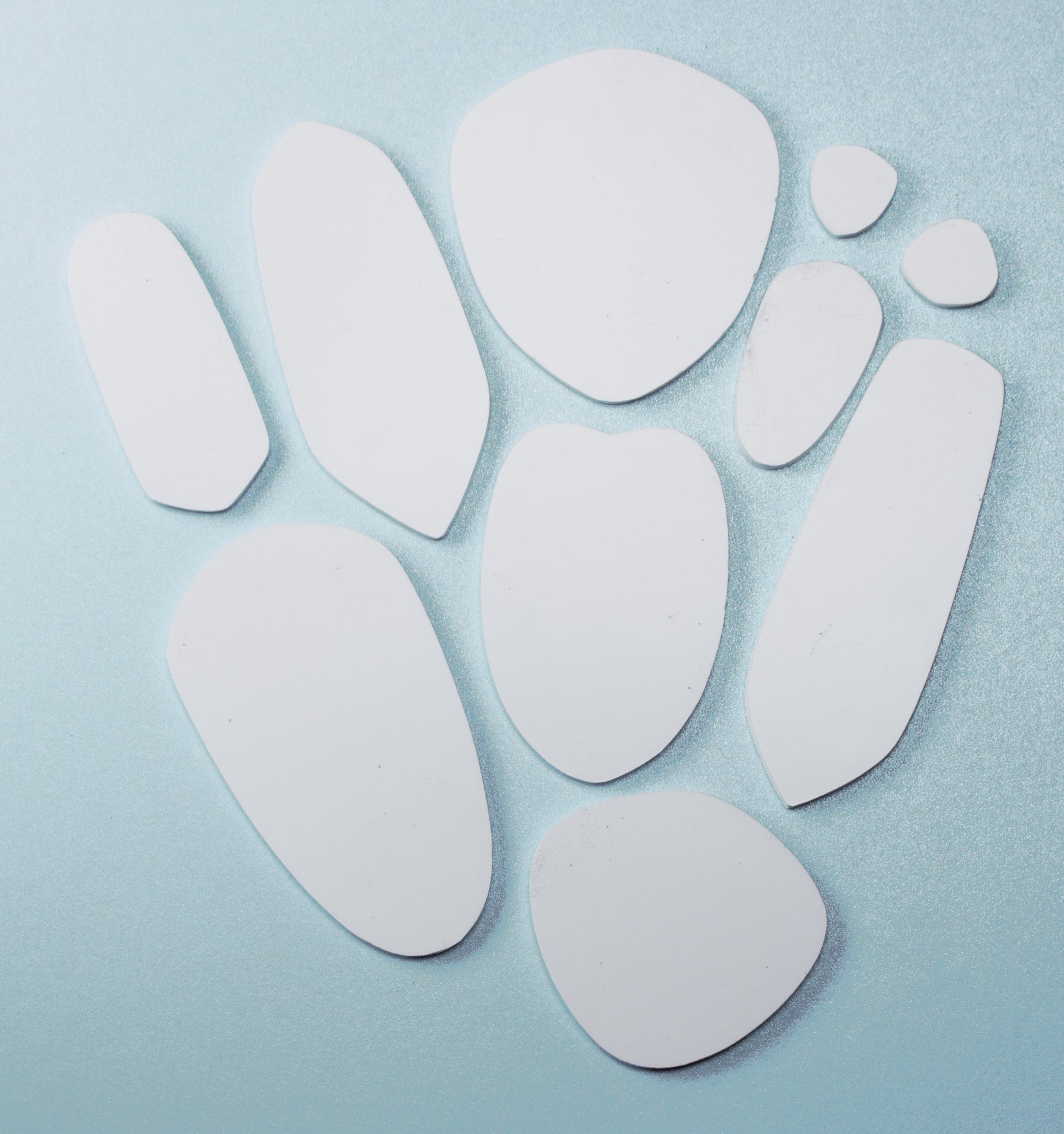 Dye Sublimation Blank Shapes are made of Unisub FRP (Fiber Reinforced Plastic), sublimatable on both sides, matte finish (Matte according to Unisub, but I think the finish is more of a lovely low sheen.) I cut each shape here at Orange Poppy Studio. This material can be cut with a jeweler's saw. You will also receive a paper template of each shape. I find templates to be extremely useful in positioning the blank shape on the sublimation print. See the Quick Start Tutorial on YouTube at the Shelley Nordman-Orange Poppy Studio Channel.