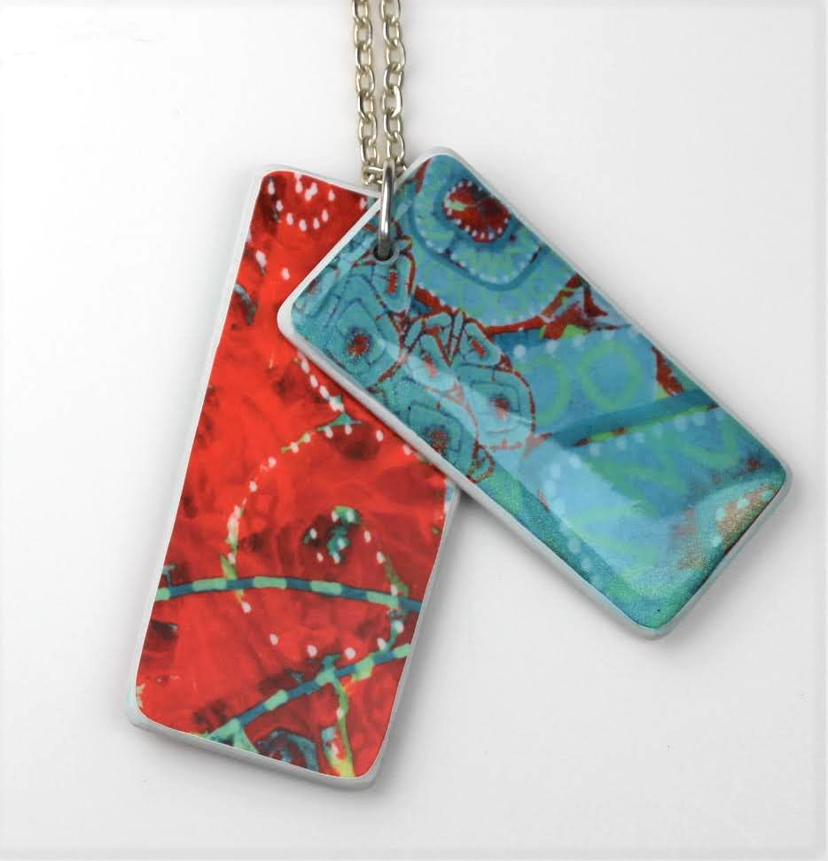This necklace was created using an original monoprint by Shelley Nordman, here at Orange Poppy Studio. The designs are on the front and back of each layer so you don't have to worry about it accidentally flipping over. Use a damp, soft cloth to clean. Each item is handmade so there will be slight variations from the necklace pictured.