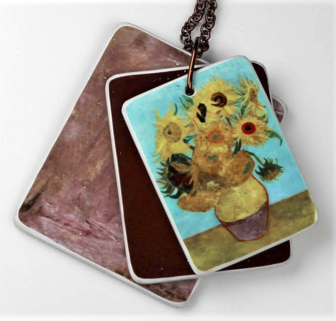 Blank Shapes are made of Unisub FRP (Fiber Reinforced Plastic), sublimatable on both sides, matte finish (Matte according to Unisub, but I think the finish is more of a lovely low sheen.) I cut each shape here at Orange Poppy Studio. This material can be cut with a jeweler's saw. You will also receive a paper template of each shape. I find templates to be extremely useful in positioning the blank shape on the sublimation print. See the Quick Start Tutorial on YouTube at the Shelley Nordman-Orange Poppy Studio Channel.